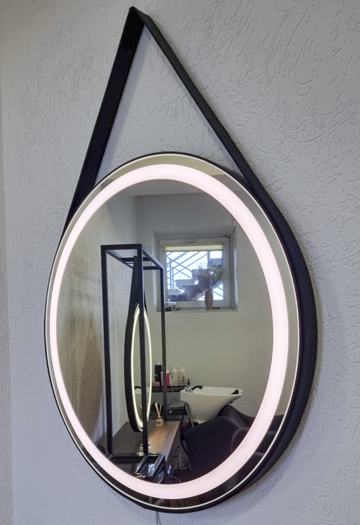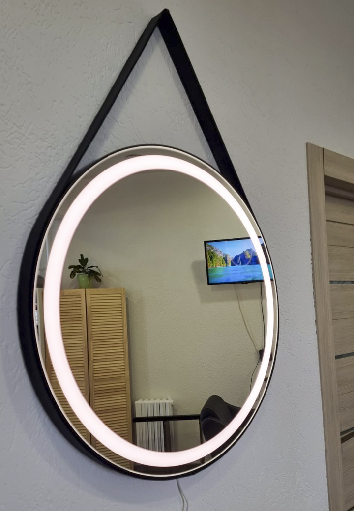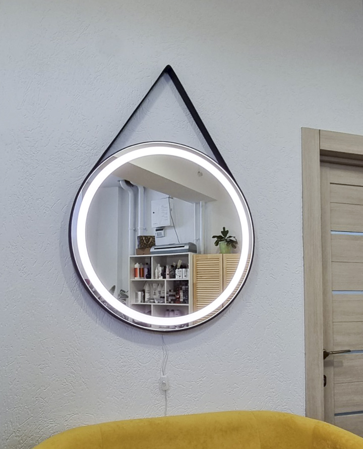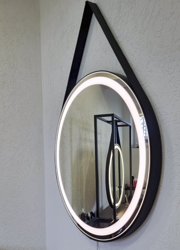 Зеркало с фронтальной подсветкой на кожаном ремне